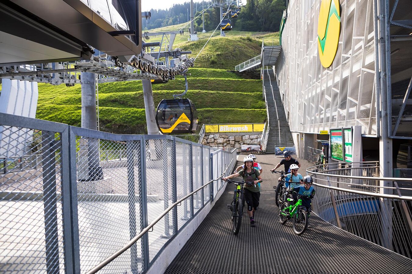 Die Bike Area befindet sich auf der Planai und um dort bequem hinzukommen, geht es mit der neuen 10er Planai Seilbahn hinauf. Bei der Bergstation angekommen, gibt es 2 Varianten um in die Bike Area zu gelangen. Für alle Einsteiger geht es zum Hopsi Express (Schrägaufzug) und damit direkt hinunter zur Bike Area. Schon geübte Biker können über den Rookie Downhill (Rote Strecke) selbst zur Bike Area fahren.