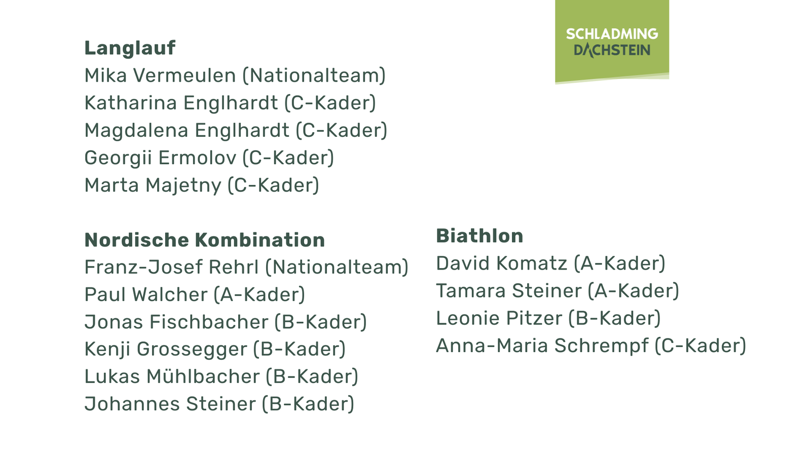 Am Schnee sind sie zuhause. Ihr Arbeitsplatz ist der Wintersport. Und sie verfolgen den gleichen Traum: Die Olympischen Winterspiele 2026. Was haben Tamara Steiner, Mika Vermeulen und Franz-Josef Rehrl noch gemeinsam? Richtig! Sie kommen aus Ramsau am Dachstein. Ein Ort, der ihre sportlichen Talente mit einem entsprechenden Angebot supportet hat. Ein Ort, der ihnen noch lange den Rücken stärken wird. Ein Ort, der für immer ihre Heimat ist. Wir gehen auf Tuchfühlung mit den 3 heimischen Spitzensportlern!