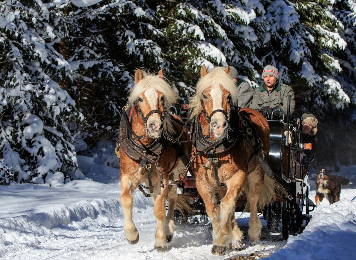 Wrapped in warm blankets you will surely be transported through the Schladming winter world by our Haflinger horses.