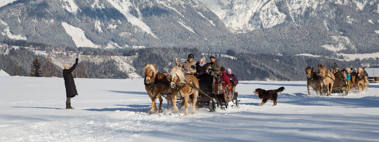 A horse-drawn sleigh ride with your host through the snow-covered winter landscape of Rohrmoos, Obertal and Untertal is always an unforgettable experience.