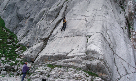 The climbing area (also known as the Edelgrieß Climbing Garden) is located at the entrance of the Edelgrießkar, nestled between Türlspitz and Gamsfeldspitz. It is characterized by its sloping slabs, which offer mainly friction and face climbing.