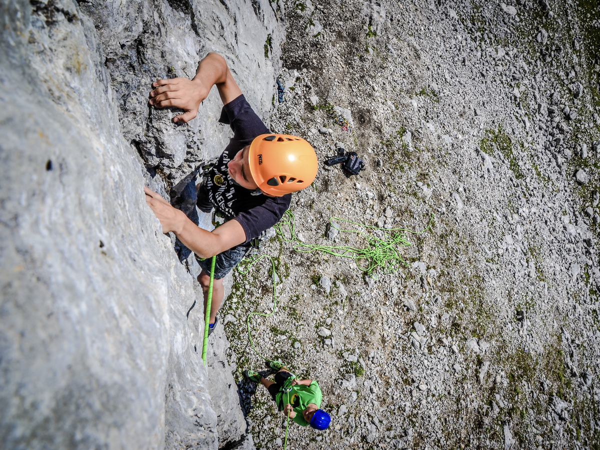 Close to the beautifully situated Guttenberghaus is a very well-secured climbing garden with two sectors. Sector A mainly features athletic wall climbing on compact limestone from grade 6 upwards, while sector B mainly offers difficulties between grades 3 and 5 on moderately steep slabs. This makes the climbing garden ideal for children and beginners.