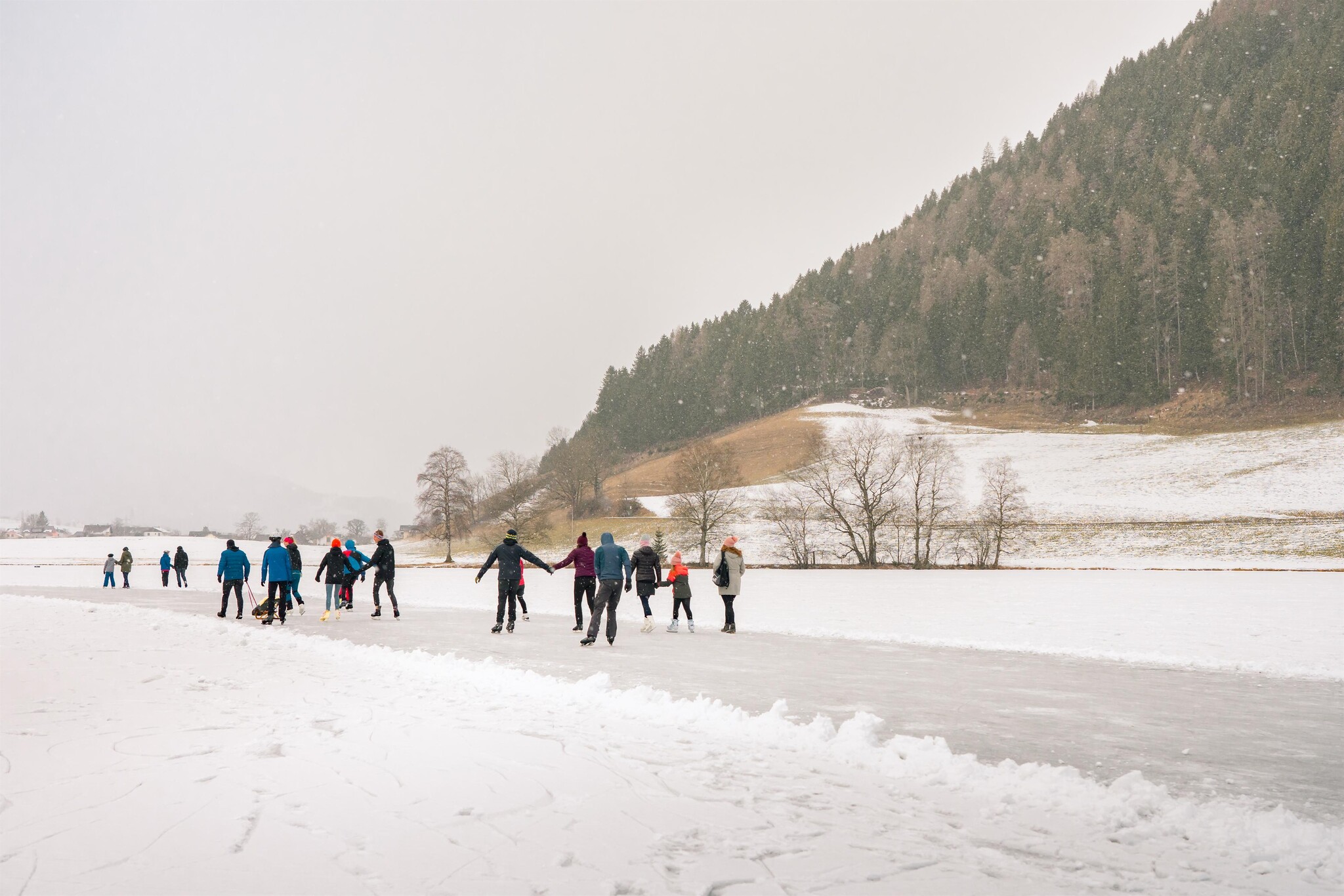 When Father Frost freezes everything, Putterersee in Aigen opens its gates. The well-maintained and largest natural ice skating area in the Schladming-Dachstein region offers plenty of space for all ice princesses and cool runners. When your legs are getting a bit tired from going in circles and your nose is glowing red, you can warm up at the refreshment stand before heading back out on the ice.