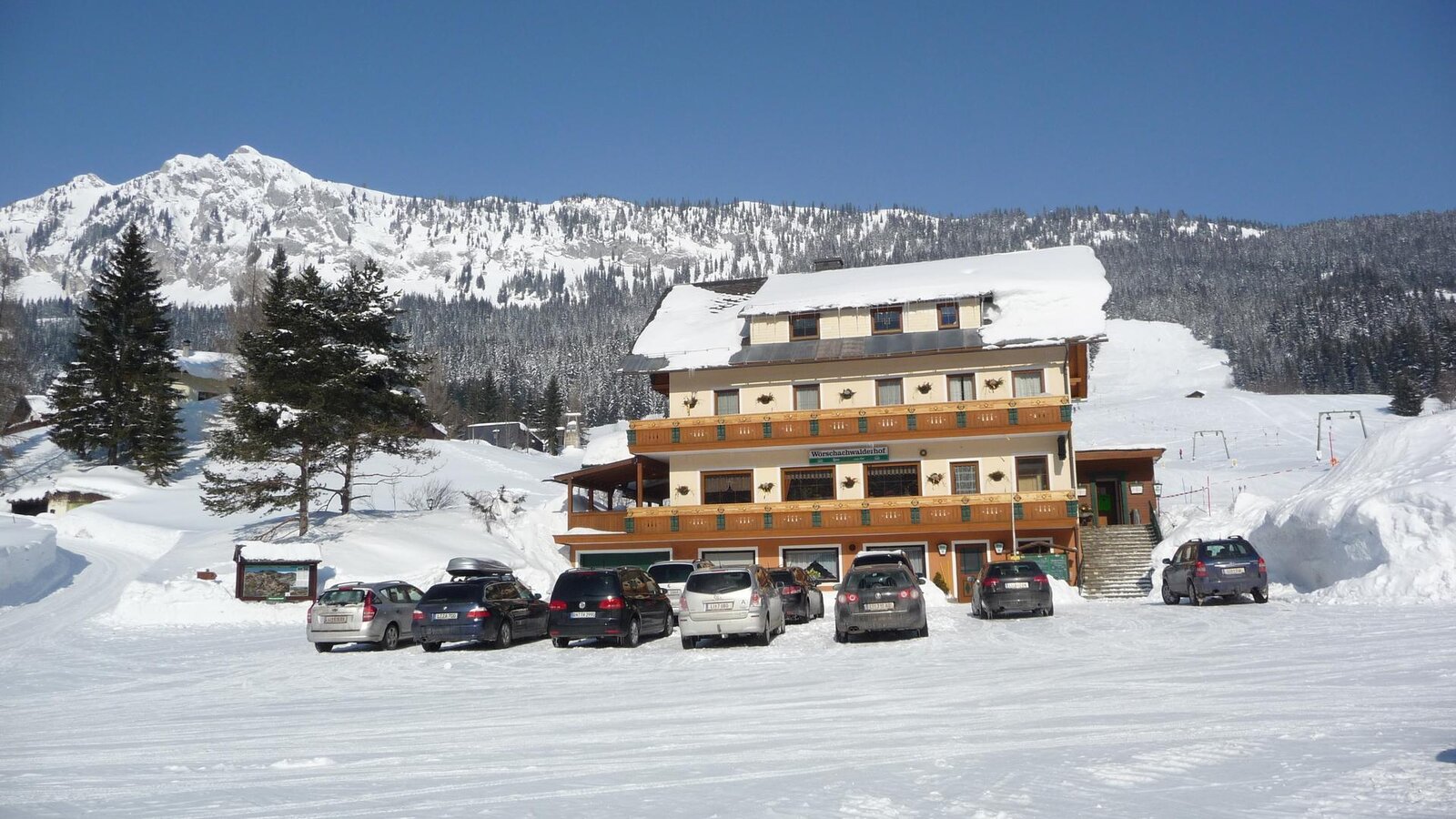 Leave the B145 Salzkammergut Bundesstraße at Klachau/Zlem in the direction of Wörschachwald and follow the Wörschachwaldweg for about 6 km to the Spechtensee lift.At the car park opposite the Wörschachwalderhof.