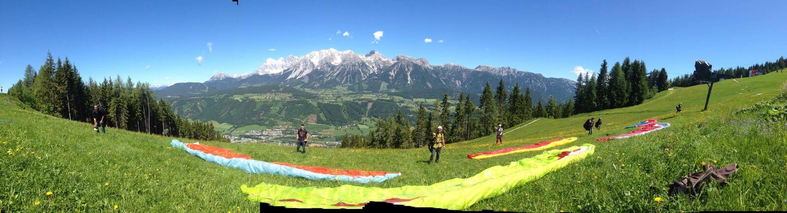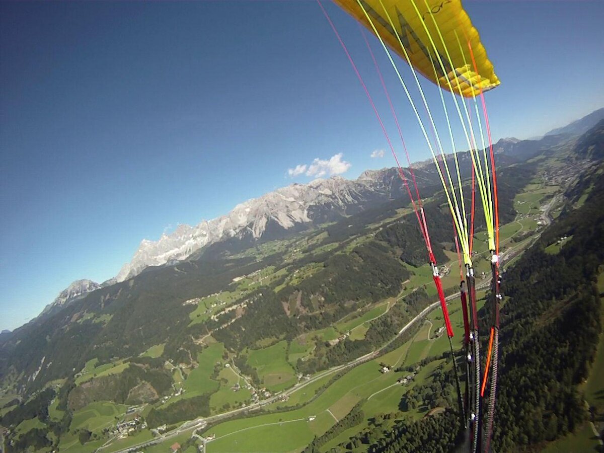 Or you can participate in a 7-day paragliding basic course during your summer vacation: After a very short time, you will make your first small flights at the practice slope and continuously improve your flying skills. After just a few days, you can - of course with radio instruction - make your first high-altitude flight from Planai in a magnificent alpine landscape.