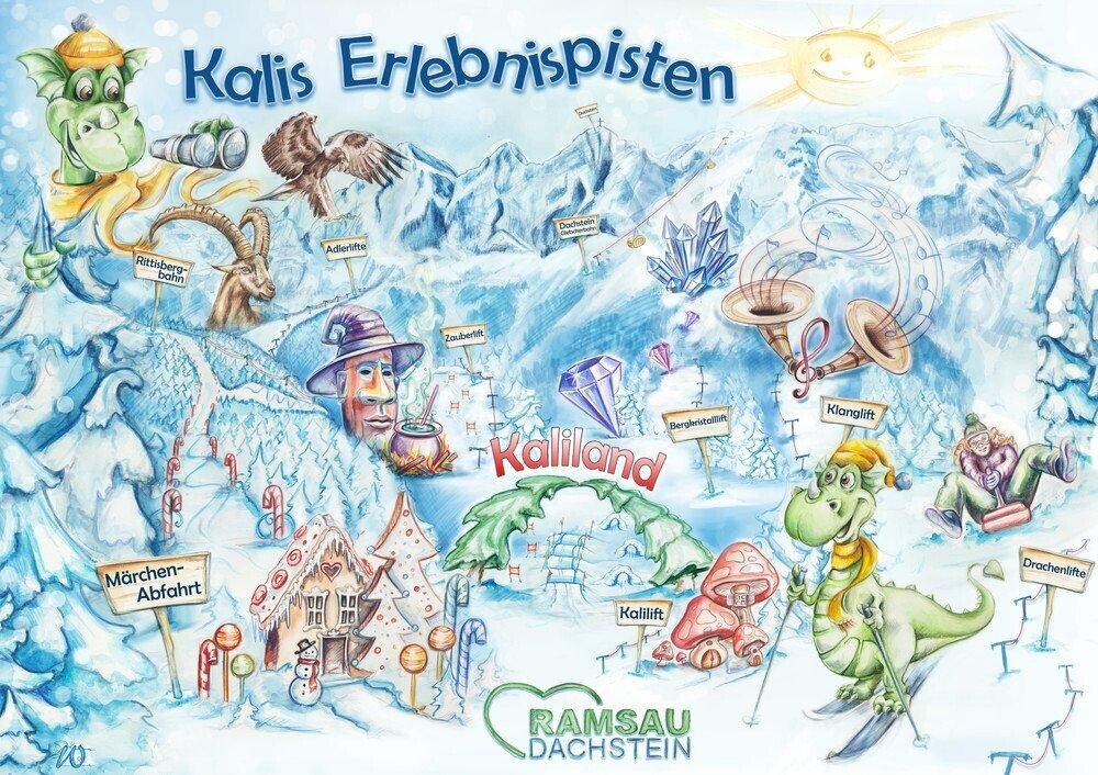 The Ramsau and Rittisberg ski region are the ideal place for children and families. On a total of 8 adventure slopes, children not only learn to ski, but also to love skiing. You are always accompanied by the friendly mascot “Kali the Ramsaur”.