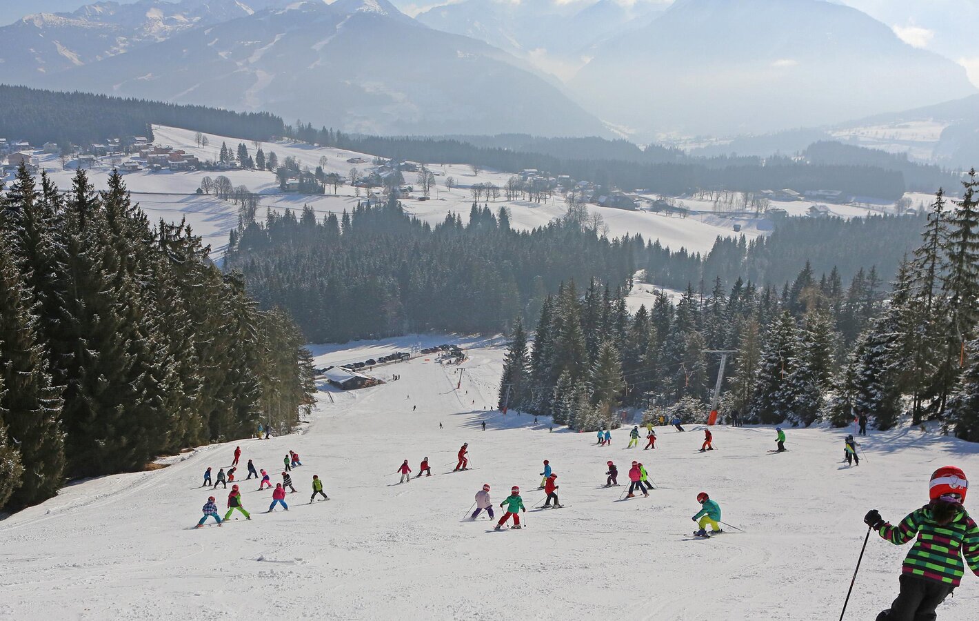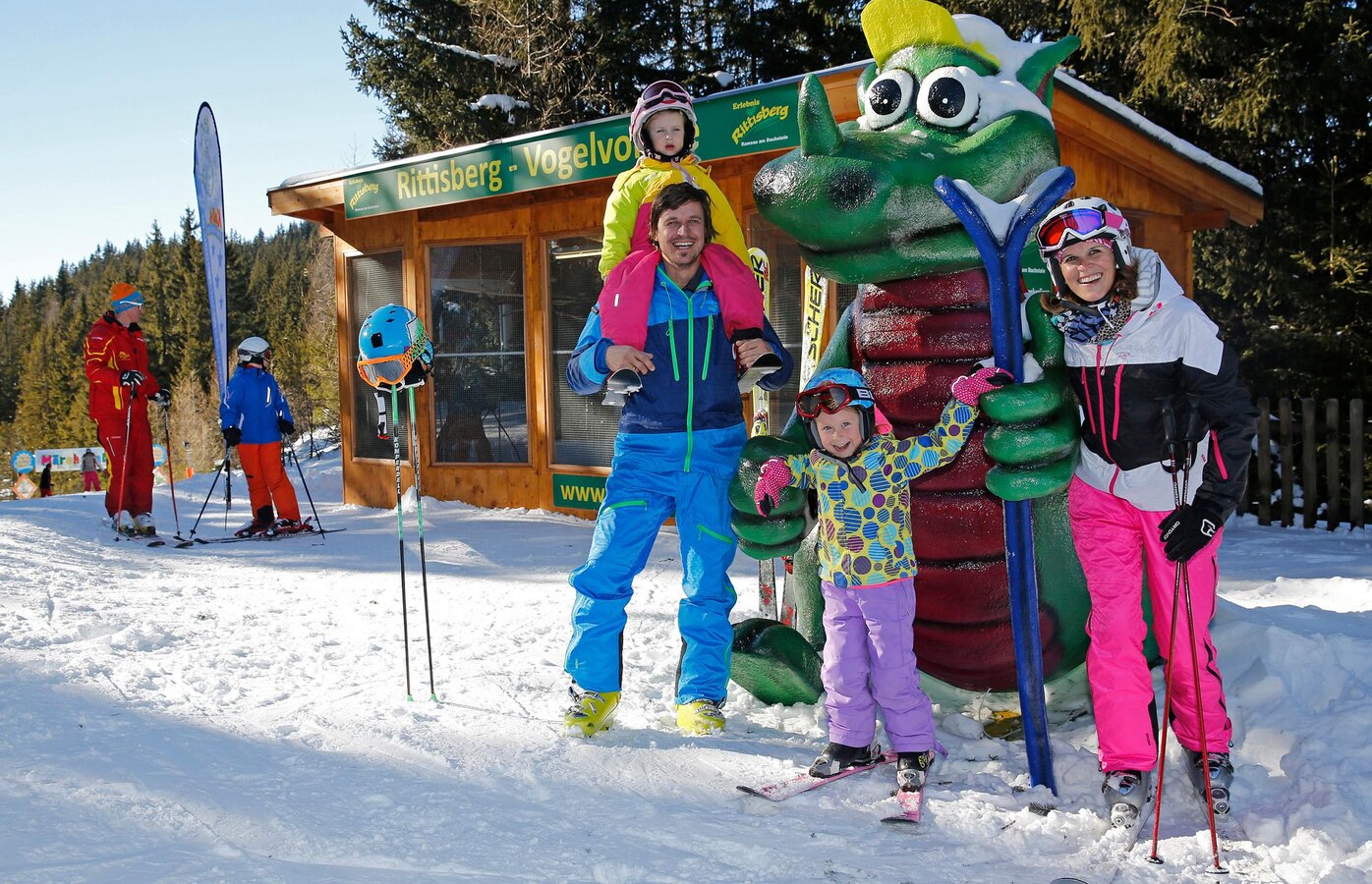 The Rittisbergbahn is the longest fairytale descent in Austria. Lovingly designed fairy tale figures like magicians, dwarves, witches etc. are waiting to be discovered by you. The medium-difficulty pistes and the steep slope on the Rittisberg also attract many experts. Many TOP female skiers train on the Rittisberg. Again and again top skiers are here to train.