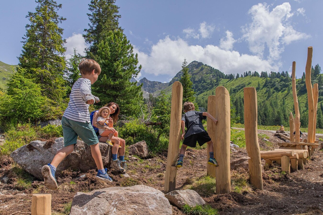 SchafsinnTeich Hauser Kaibling: Klettermaxl’n aufgepasst: Am neuen Schaf-Klettersteig könnt ihr über Baumstämme, Stelzen, Steine uvm. eure Kletterkunst unter Beweis stellen – ganz ohne Gurt und Karabiner.