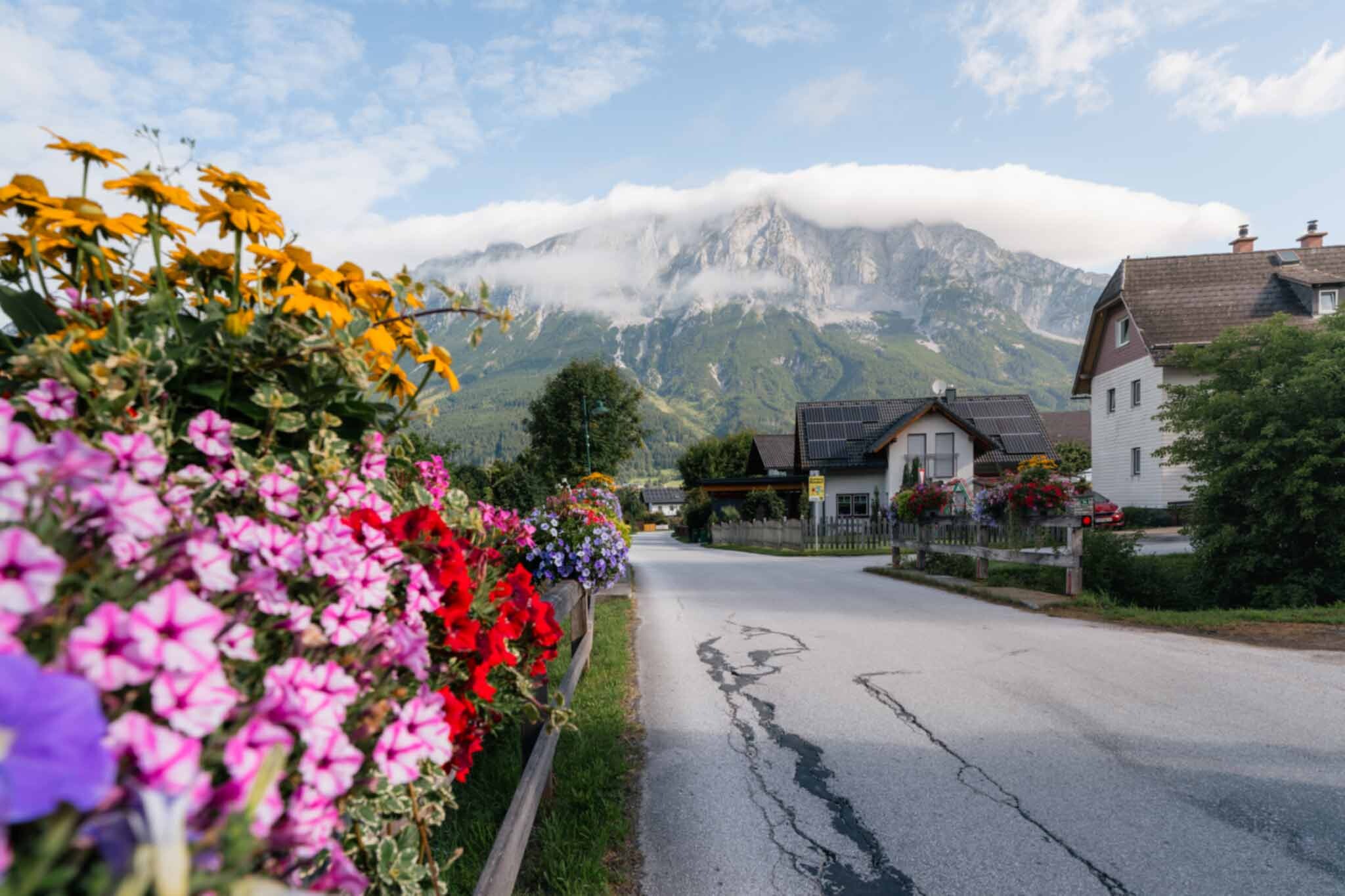 From the train station, it’s about a 10-minute walk to the starting point at Gasthof Grimmingtor, or you can follow the R7 trail as you enter Niederöblarn.