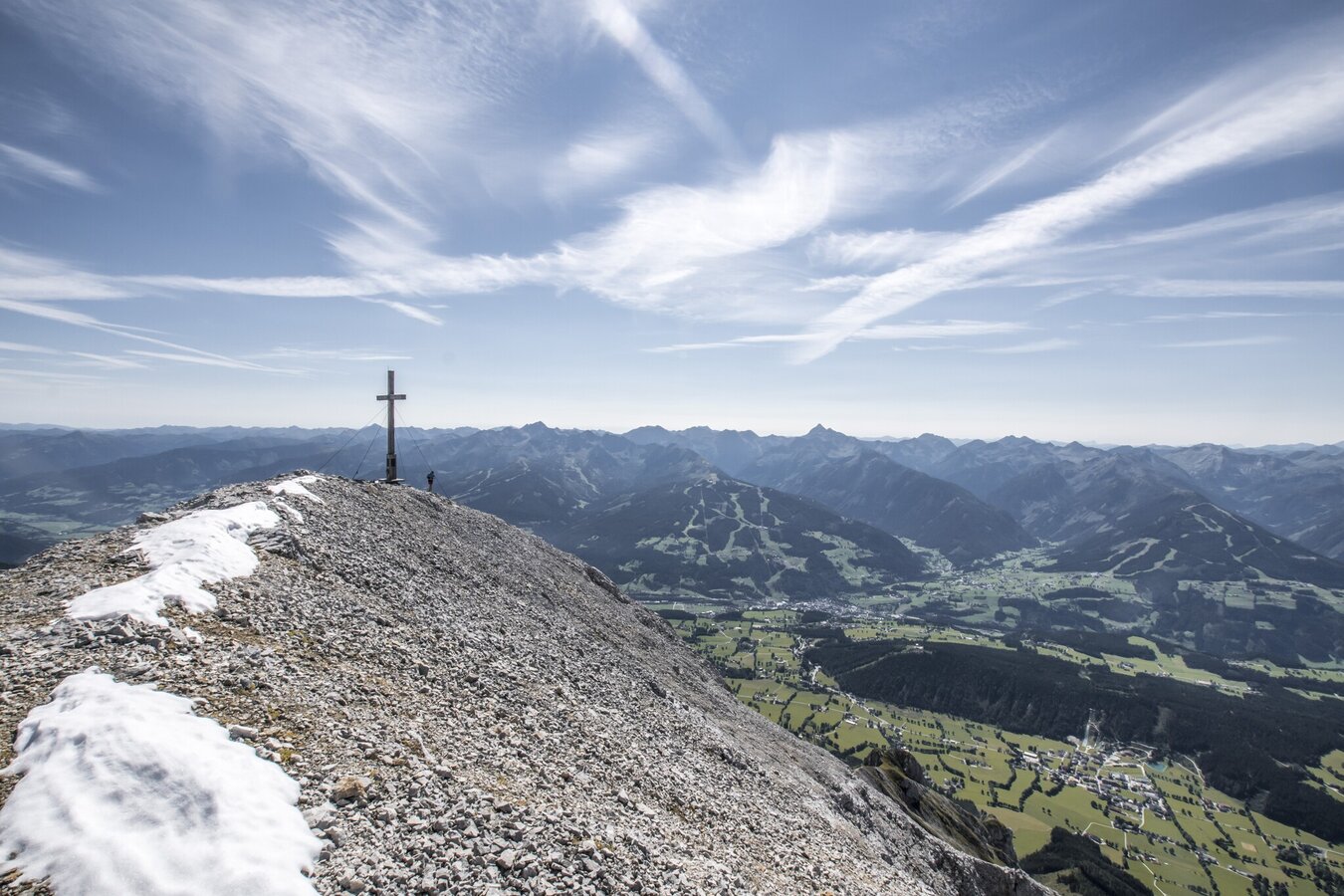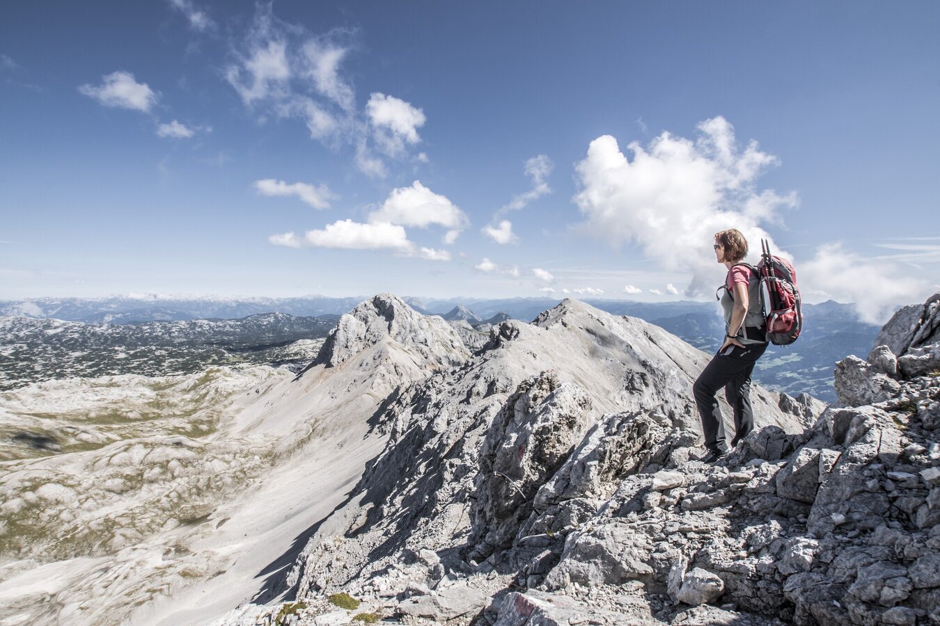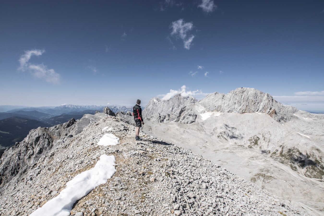 High alpine mountain tour - initially high altitude path - transition to high alpine path - partly as a variant via ferrata or steep rocky path.Summit cross Scheichenspitze - impressive karst landscape, small Edelgrieß glacier, summit hiking trail.