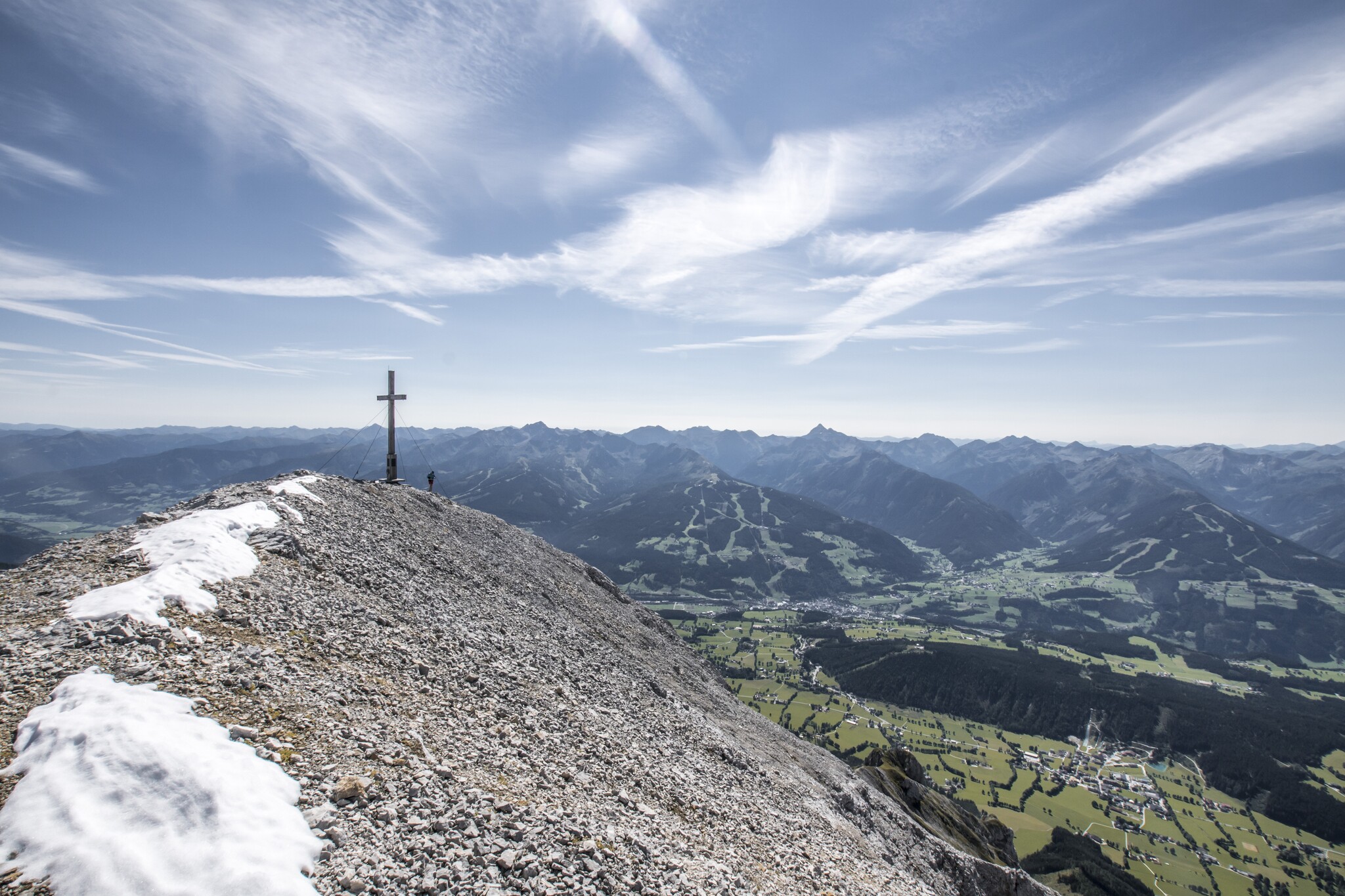From the Hotel Feistererhof ascent to the Guttenberghaus. From the hut on trail no. 618 to the Gruberscharte and continue through the imposing Landfriedtal (junction of trail no. 68) to the Scheichenspitz summit (2,667 m). Descent via the Edelgrießkar on trail no. 672 to the Türlwand.