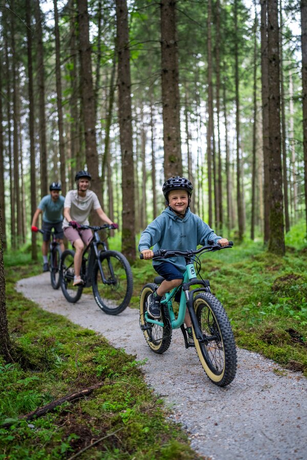 The five-kilometre singletrack was opened just two years ago. The trail center is unique in the German-speaking region and is characterized by its particularly environmentally friendly, sustainable and robust construction. The narrow cycle paths are also suitable for cyclists without mountain bike experience. The route is particularly interesting for families with children, as there are only 40 meters of elevation gain over the five kilometers. The track is therefore also perfect for "breaking in".