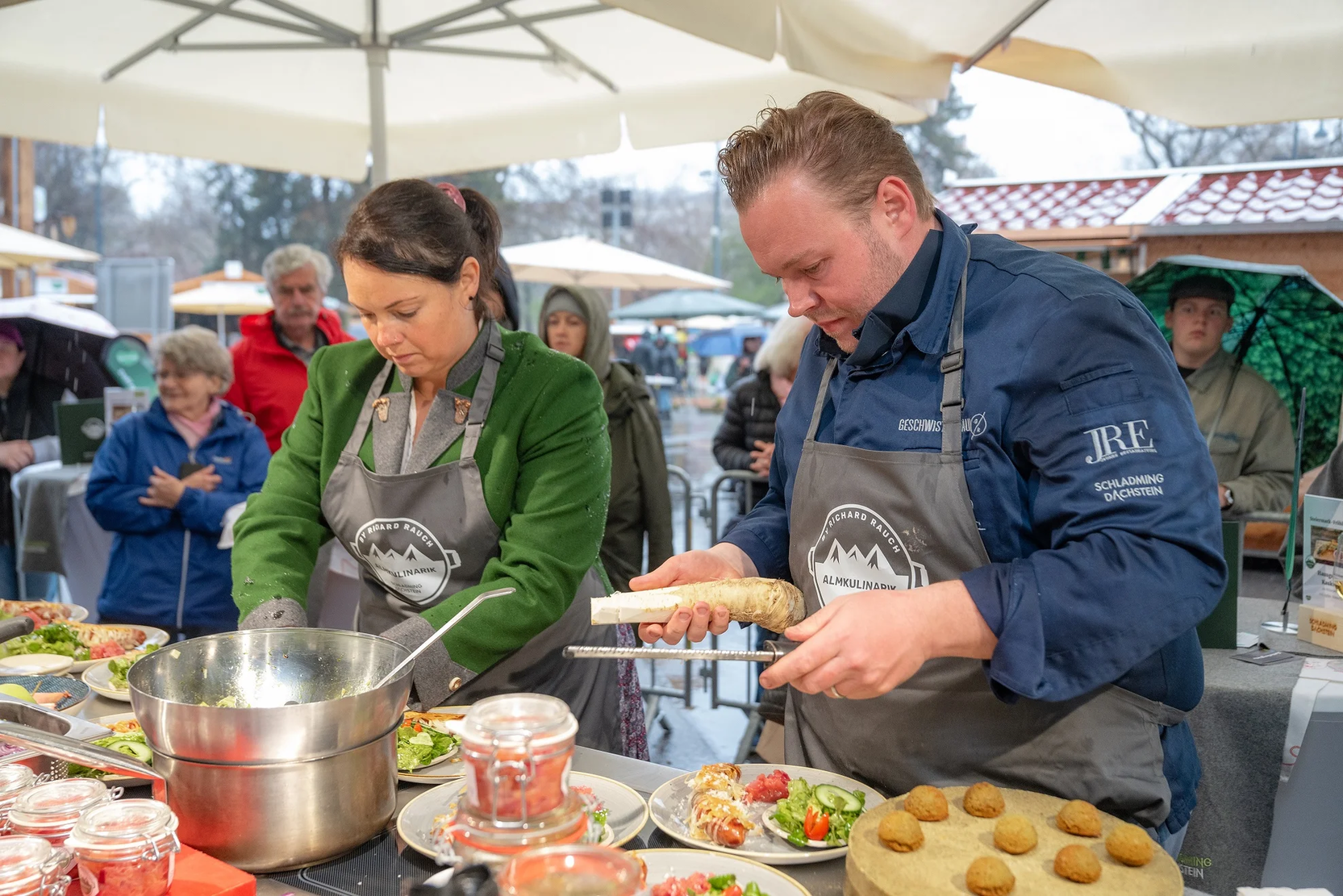 The region presented itself with a varied program throughout the duration of the event. In the Schladming-Dachstein Alm, the gourmet innkeepers provided culinary highlights and warm Ennstal hospitality. The offer was complemented by dishes from the successful "Schladming-Dachstein Almkulinarik by Richard Rauch" project. Celebrity chef Richard Rauch himself was on site and, together with Lydia and Jürgen from the Sattelberghütte, conjured up a special Alpine cuisine creation for the guests. The Pürcherhof Mitterberg and the doughnut hut of the Öblarn rural youth also contributed to the culinary diversity of the Schladming-Dachstein presentation with regional delicacies. The new 10-seater gondola lift on the Hauser Kaibling, which will go into operation in winter 2025/26, was also on display at the event.