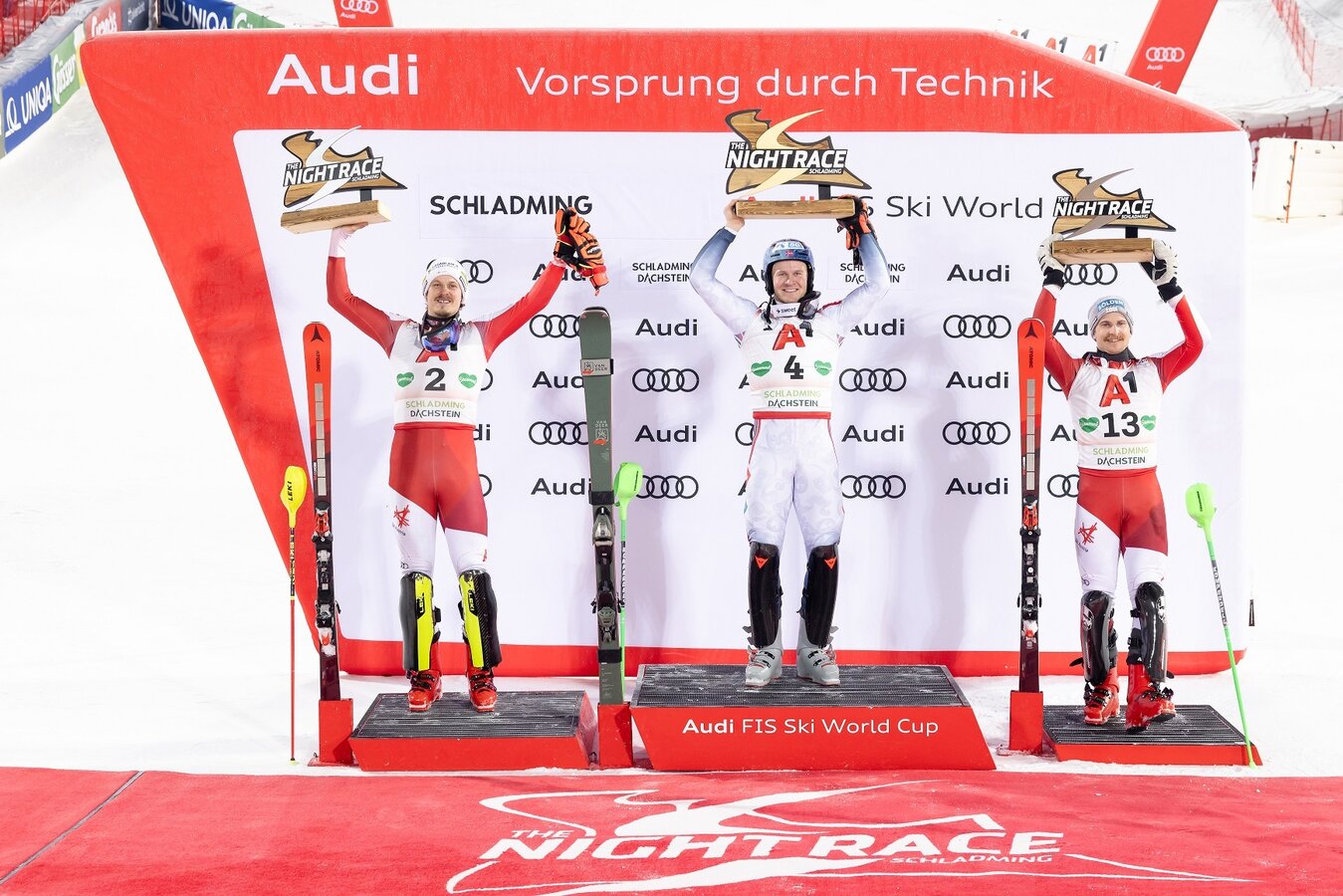 Manuel Feller and Fabio Gstrein have provided the Austrian slalom racers with a liberating blow at the dress rehearsal for the World Championships in Saalbach. The duo finished second and third respectively at the traditional night race in Schladming on Wednesday, ensuring the first slalom podium places in red-white-red this season. Only the Norwegian Timon Haugan stood in the way of an Austrian double victory.