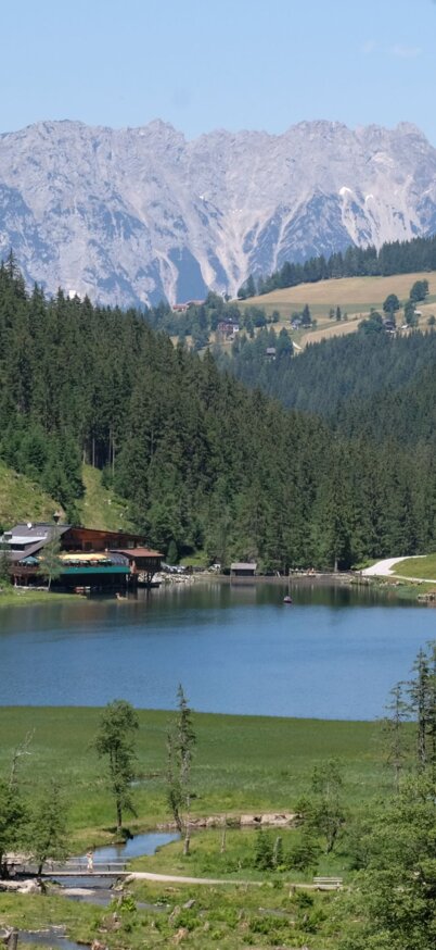 The Steirischer Bodensee is a true paradise for nature lovers and the ideal starting point for hikes of all levels of difficulty. Whether it's a leisurely stroll along the lakeshore, a panoramic mountain tour to the Hans-Wödl-Hütte on the Hüttensee or a challenging alpine adventure to the Hohe Wildstelle or the Höchstein - everyone will find their personal favorite route here.